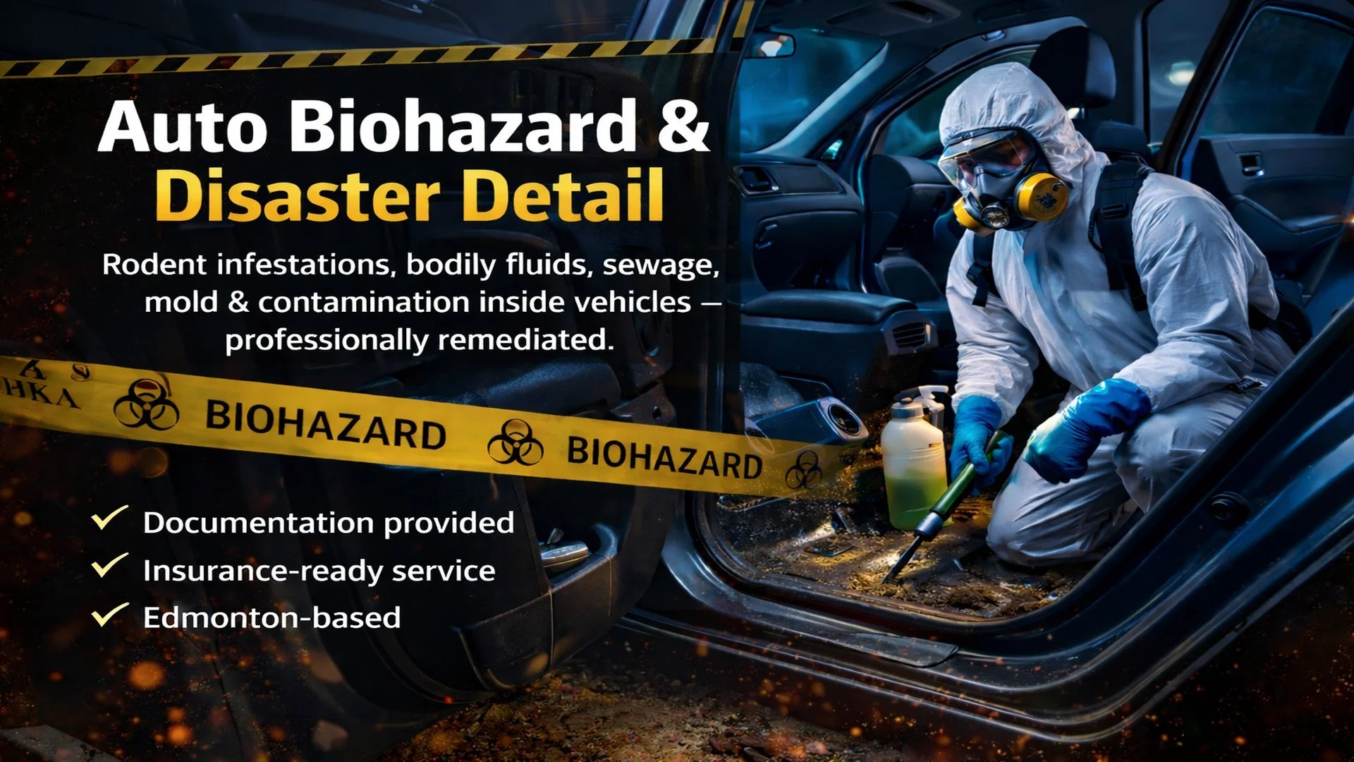 Our Biohazard car cleaning handles both. Whether it’s rodent damage, flooding, mold, or years of built-up grime and bacteria, Cotton Soft Detailing provides professional-grade vehicle restoration in Edmonton that brings your interior back to safe, fresh, and livable condition.